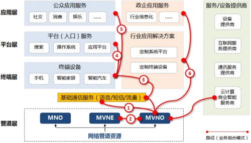 5、MVNO+基础通信服务+应用/内容/增值服务(终端可选):一般出现在拥有一定客户基础的应用和内容提供商上,把基础通信服务作为巩固用户基础、拓展市场、差异化服务的重要手段,如提供廉价甚至免费的定向流量、网内免费通话等服务以绑定用户。