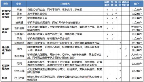 3、通信集成/服务商:华翔联信的玩法基本是走行业应用的路,通过平台解决方案+系统设计开发+政企通信服务提升其所租赁网络资源的价值,实现持续盈利。北纬是最有可能成为MVNE的玩家,作为运营商的重要SP,其在BOSS上的经验非常丰富,租用网络资源+运营系统+码号批发应是其主要盈利模式,或许会成为上述某些MVNO的供应商也说不定。浙江连连在充值代理方面有强大的渠道资源,但一个充值总代能解决虚拟运营中诸多环节的问题吗?无论在品牌、技术、内容、运营上都无甚竞争力,我更愿意理解为其申请MVNO是不得不走的一条转型道路,充分借力、快速投入、抢占客户资源或许能够在细分市场上抢到一小杯羹。