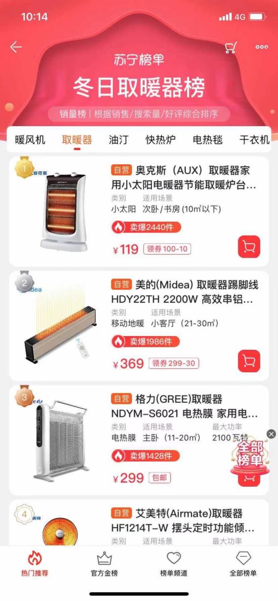 疫情影响,倡导不扎堆、少聚会,部分市民对在哪里吃年夜饭这件事迟疑不决,这个年不妨回到从前,自己动手在家吃顿团圆饭,而在异乡就地过节的人们,更要过个好年,吃出“年味道”,苏宁易购APP底部导航栏“发现”频道,包含各种美食做法的种草短视频和图文教程,小家电如何做出健康美食一目了然。由于 “宅家”激发的“懒人经济”和“健康消费”,也放大了相关的产业需求,小家电产品销量持续增长态势,空气炸锅、添可洗地机、多功能料理锅等新兴小家电也迎来爆发,在年终,苏宁生活家电上线年货推荐榜单,集合全年数据,从榜单直观的看出,哪些新兴小家电 “逆势突围”,哪些品牌巨头“独领风骚”。以苏宁易购消费大数据为基础,将小家电销售量、用户搜索量、好评率三个维度综合排序,场景细分化的将爆款产品展现与消费者,如冬日取暖器榜单,暖风机、取暖器、油汀、快热炉、电热毯等不同取暖方式的Top产品一目了然,助消费者做好决策,买好年货。