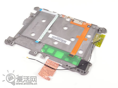 继续拆,Wi-FI天线用胶水固定在内部金属框架上