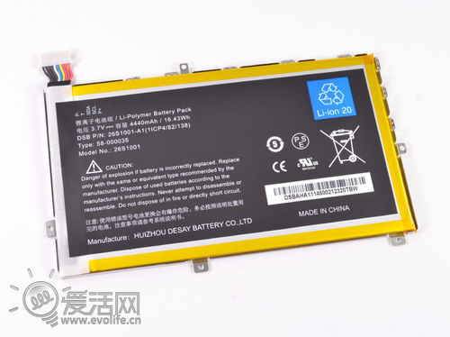 这块锂电容量是4400mah,高于Nexus 7的4326mah,得胜出品