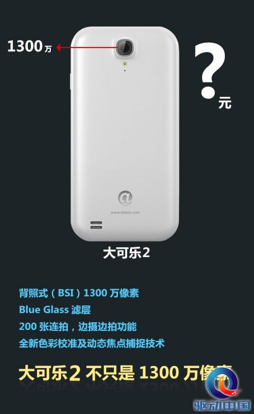 驱动中国消息,根据此前消息,大可乐2手机将会在今年4月份推出,而且谍照及部分配置已经遭到曝光。现在有关该机的更多配置信息再次遭到流传了出来。据悉,大可乐售价2不仅将配备1300万像素摄像头,还将支持200张连拍和摄像拍照同步功能。