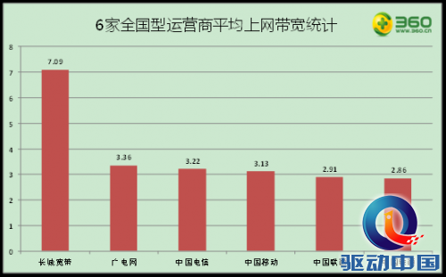 图6: 6家全国型运营商平均上网带宽统计