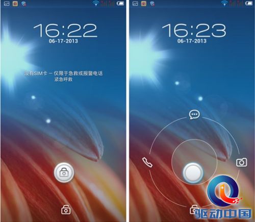 idol X在锁屏界面上玩了一点点小心意,中间的解锁图标会根据重力感应而进行小范围移动。把图标向四个方向拖动可实现不同功能的快速解锁。