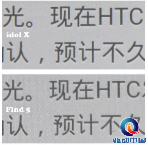 idolX采用的是一块5.0英寸的1080p屏幕,并使用了IPS+工艺,以及OGS工艺,并使用了0.55mm超薄玻璃,使得文字图画最大限度靠近表面,形成跃然于纸上的效果。从参数上看,idolX所配搭的确实是一块相当出色的屏幕,而实际表现是否真如此呢?这里拿了口碑不错的OPPOFind 5进行参考对比一下。