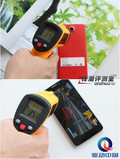 毕竟1080p屏幕对硬件带来不少的压力,因此在游戏方面,idolX表现得比较中庸。同时,在进行了半小时的极品飞车后,测出机身最高温度为37°C,位于主摄像头附近,而屏幕上最高只有35°C左右。在温度控制上,可谓是延续了联发科的优良传统,冷静!!