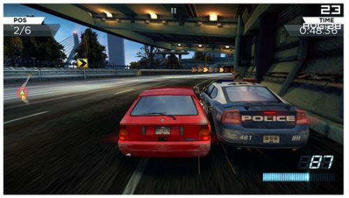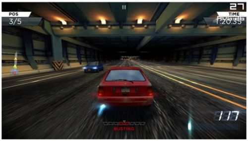 继续跑个极品飞车17。游戏运行流畅,帧率稳定在27,28左右。不过画质特效一般,液氮加速时,场景的模糊效果,以及车窗玻璃反光效果都没有明显地体现出来。