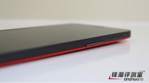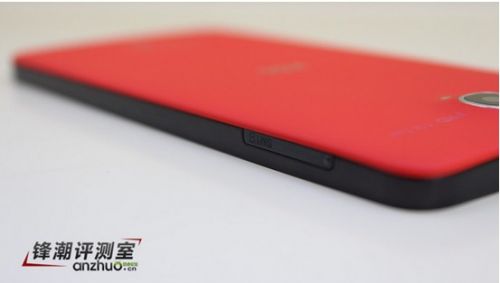 侧边框采用平面的设计,右侧安排了音量键,按键上方是idolX的其中一个sim卡卡槽。