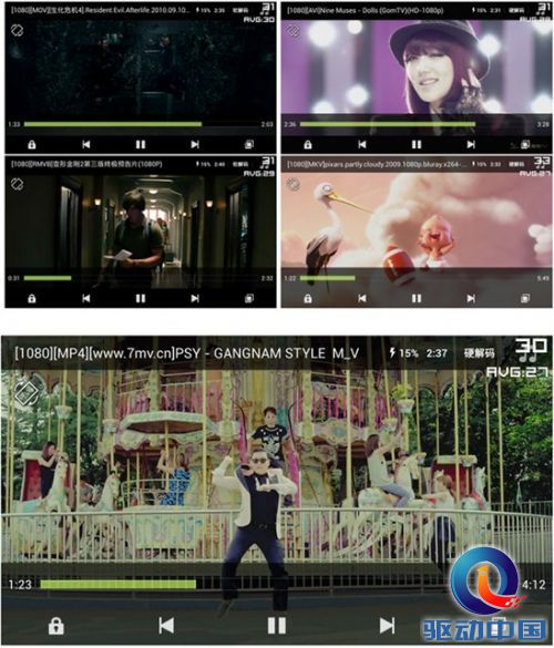 视频播放方面,选用了5部格式分别为avi,mkv,mov,mp4,rmvb的视频,均为1080p分辨率,视频本身满帧为30fps。其中自带播放器只能直接播放出其中avi,mkv,mp4这三个格式的视频。不过不要紧,直接下载个MXPlayer进行测试。