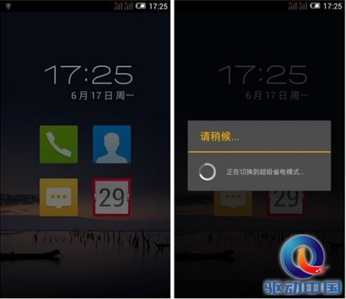 超级省电。开启后,屏幕亮度将会降到最低,同时只能提供最基本的通话、联系人、短信、日历四个功能,以达到最佳的省电效果。