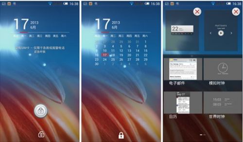 锁屏上方是小插件区域,在这区域向左右滑动可切换到不同的小插件,向下滑动的话,还可以进入详细显示。另外,这位置的小插件还可以根据用户的需求选择不同的插件,增减插件的个数。