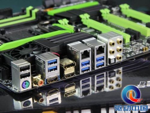 背部接口方面,主板提供1个PS/2键盘/鼠标插座、2个HDMI插座、1个DisplayPort插座、1个S/PDIF同轴输出插座、1个S/PDIF光纤输出插座、6个USB 3.0端口、2个USB 2.0端口、2个RJ-45埠、5个音源接头(中央及重低音输出、后喇叭输出、音源输入/麦克风、音源输出、耳机与喇叭输出。