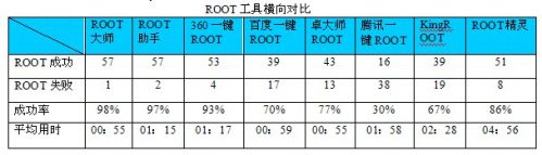 ROOT精灵在实际测试中,成功ROOT了51款手机,失败了8次,成功率达到了86%,平均用时2分03秒,ROOT精灵目前在ROOT工具中排第4位。