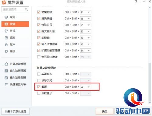 此外,大家还可以在搜狗输入法“设置属性”-“按键”-“扩展功能快捷键”中进行“截屏”快捷键设置,这样一来,当大家有截图需求时,只需按住快捷键便可快速进行截屏操作了。