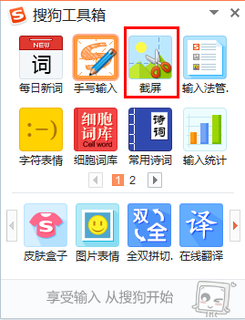 用搜狗输入法截屏功能截图的操作十分简单。首先,右键搜狗输入法桌面图标打开“搜狗工具箱”,选择“截屏”功能,之后便可以进行截图操作了: