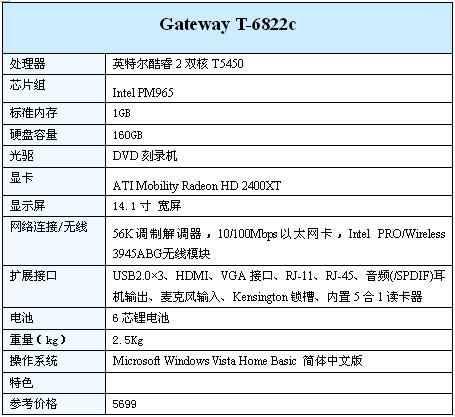 Gateway T-6822c是一款配备双核独显的高性价比笔记本。