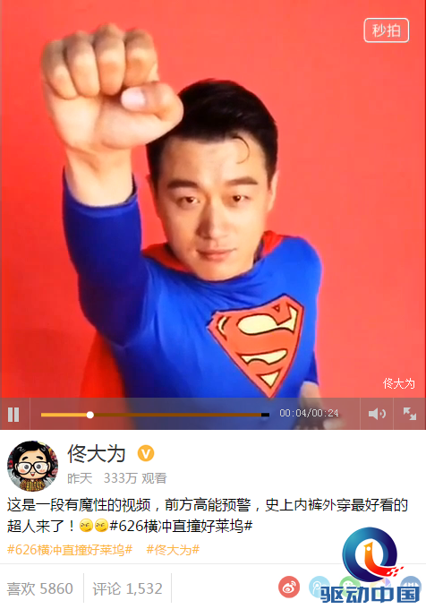6月2日,暖男佟大为又来秒拍逗粉丝,成为史上内裤外穿最好看的超人!短短1小时播放量突破200万。视频中暖男虽然一句话没有说但是这内裤外穿就足够让粉丝循环半小时了。