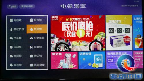 天猫魔盒魅族专版的遥控器上还有一个“M”标识的魔键。在任意界面下按下魔键,可直接进入购物界面,十分方便。笔者经过试用观察到,由魔键启动的购物页面为当前最热活动和魔键卖家精挑细选的商品,比如当前正值618,按下魔键到达淘宝电视年中大促活动页面,这个设计还是蛮贴心的。