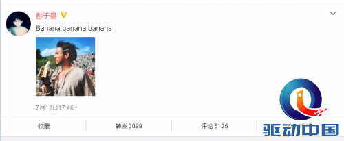 随后,在同一天的17点46分,彭于晏转发微博回应道:“这下爽大了!”有意思的是,彭于晏在同一时间还应景的在微博中晒出一张吃香蕉的剧照,男神形象瞬间全无。