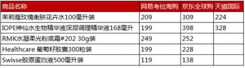 最最最关键的是,精致护肤也平价哦!茱莉蔻玫瑰衡肤花卉水100毫升装,网易考拉售价仅为209元,而京东全球购售价309元,天猫国际售价224元。IOPE神仙水生物精华液深层调理精华液168毫升,网易考拉秒抢价199元,而京东全球购售价398元,天猫国际售价328元。RMK水凝柔光粉底霜#202 30g装,网易考拉秒抢价249元,京东全球购售价252元。Healthcare 葡萄籽胶囊300粒装,网易考拉售价199元,京东全球购售价228元。Swisse胶原蛋白液500毫升装,网易考拉售价119元,京东全球购售价138元。
