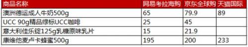现在这一切,可以触手而来。澳洲德运成人牛奶网易考拉售价65元/袋,而京东全球购售价79.9元/袋,天猫国际售价89元/袋。UCC职场咖啡,网易考拉99元任选四件,换算袭来,1罐90g精品绿标UCC咖啡只要25元,而京东全球购售价45元。意大利佳乐锭125g乳糖原味乳片,网易考拉售价15元/袋,而京东全球购100g每袋售价21.9元。康维他麦卢卡蜂蜜500g网易考拉售价195元/瓶,而京东全球购售价200元/瓶,天猫国际官方旗舰店233元/瓶。网易考拉售价全线低于其他电商平台,更不要谈诺奥、极地熊等世界知名美食品牌独家登陆,这个十月是给味蕾好好的享受了。