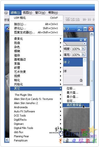 第四步,打开【滤镜】菜单,找【其他】——“高反差保留”,蹦出对话框。