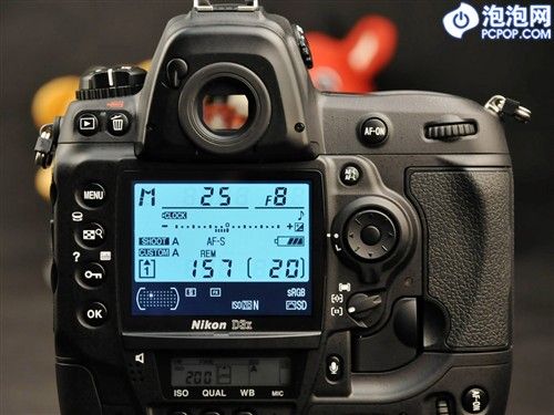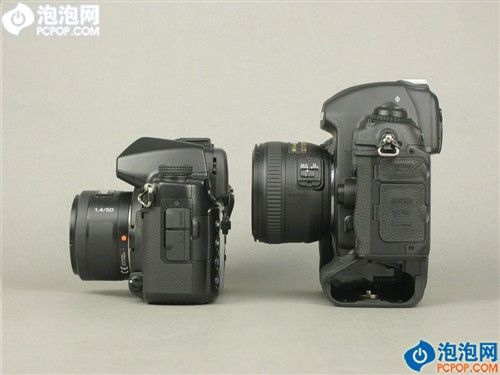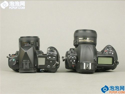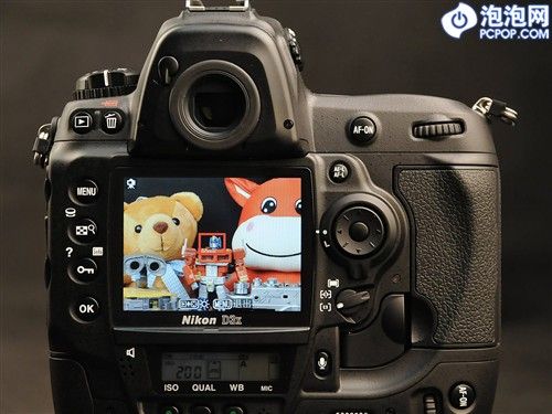 和身边的A900相比,D3x要大上一圈,不过从F100和A9时代开始,尼康相机与美能达相机间机背操作区布局上的相似性,也被延续到了现在:总得来说,这两个厂商都希望相机的操作更直接,更便捷——这与佳能单反建立在“防误触”基础上的机身操控布局,迥然不同。