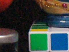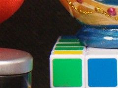 上图是A900在ISO1600时拍摄的,照片被缩小到600万像素,图中彩色框住的部分即为下图的截取区域。以下照片,左侧皆系A900拍摄,右侧皆系D3x拍摄。