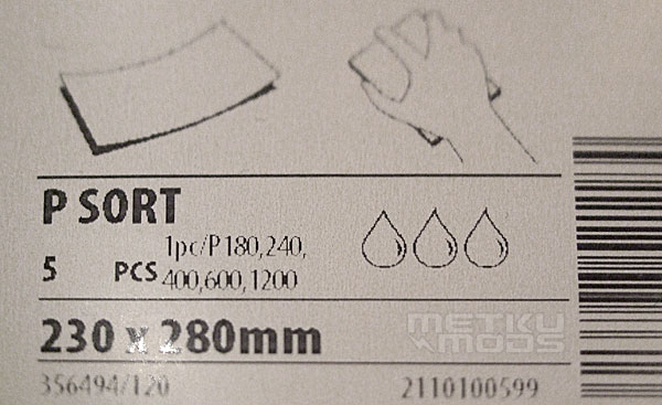为了研磨抛光,我们要使用三种标号的水砂纸,400、600、1200。需要注意的是,水砂纸的标号越高,那么沙粒就越细致。