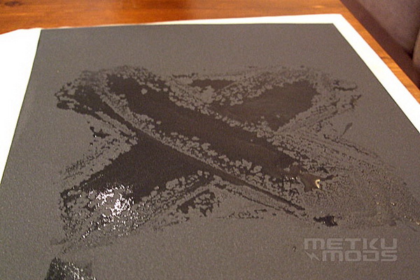 当处理器表面的电镀土城被400的水砂纸打磨退色之后,我们可以改用更为细致的600水砂纸继续打磨。打磨的手法与上面相同,都是成X形状。