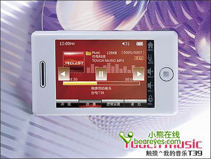 T39采用韩国Telechips TCC8200主控芯片与英国欧胜WM8978G DAC芯片组成第四代双核心架构。配备2.6英寸26万色TFT触摸屏幕,分辨率为QVGA(320×240像素),支持30帧/秒的AVI、WMV视频格式的播放,支持MP3、WMA、FLAC和WAV格式的音频文件。