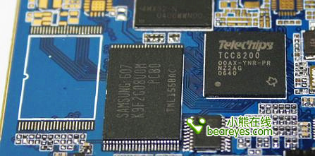 TCC7801主控采用32位ARM926EJ-S加ARM946ES双核心处理器,每个核心独享16K高速缓存,运行频率192MHz,核心工作电压只需1.2V,所以比上一代0.13um工艺的TCC77X系列还要省电。