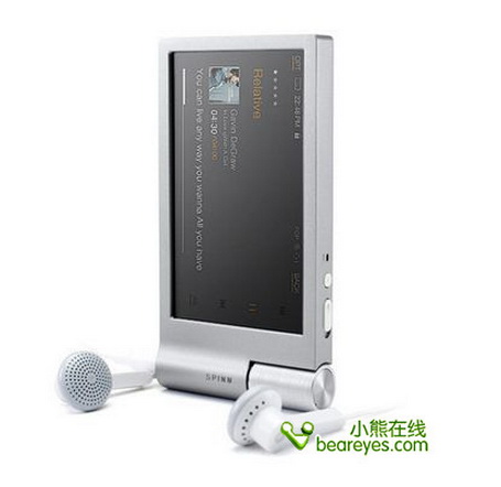 SPINN是iriver最新推出的旗舰级MP3,也是目前唯一一款采用了Telechips 顶级的TCC7901主控方案的MP3,综合实力非常强大。SPINN的面板采用了精致时尚的磨砂处理,令其充满了金属韵味。99.5×51×10.7 mm的体积令其便携性极佳,无论是整体设计还是做工都堪称iriver现售产品中的佼佼者。