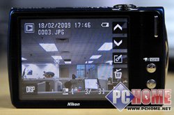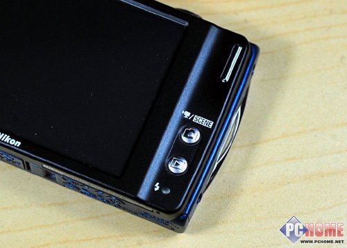接下来就让我们一起来看一下尼康 COOLPIX S230那让指尖跳舞的舞台。3英寸23万像素的超大触摸式LCD与右侧的拍摄/摄像、回放按钮组成了 尼康COOLPIX S230的背面。相对于S230本身相对轻薄的身体,机背上的这块3英寸的LCD实在大的有些触目,给人很强烈的视觉冲击。不过尼康目前还在使用23万像素的屏幕,这可能是受到配件供应以及制造成本的限制。如果这块大屏幕能够拥有46万甚至更高的分辨率,我相信它能让S230的拍摄和回放操作更加妙趣横生。
