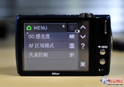 但令人为之心动之处,还是在新增了性能优异的触摸屏界面上。该LCD采用了抗指纹的防眩功能和防反射涂层,在明亮光线下具有更佳的显示效果。另外需要强调的是本款相机的触摸式面板为带坚固亚力克材质的电阻膜类型。与我们熟悉的iPhone、iPod Touch不同,它们使用的是一种静电电容系统。静电电容系统仅支持手指操作而电阻膜系统还支持手写笔。尼康数码相机的触摸式面板使用的材质与其它触摸式数码相机制造商使用的电阻膜不同。