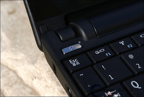 像众多的上网本一样,键盘的上方除了电源按键以外再没有其他功能按键了,具有弧度的长条电池则似乎充当了这个区域的装饰物。