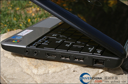 右边的接口较多,分别为RJ45高速以太网接口、两个USB接口、HDMI视频输出接口以及耳麦话筒接口。其中非常值得一提的是,Insprion mini10在视频输出上摈弃了古老的VGA接口,采用了成本较高,较为现代的HDMI,看起来这种设计对于使用上网本的用户来说使用并不频繁,但是由于Insprion mini10采用了Intel的Atom Z530处理器,所以在HD视频方面将会被着重强调。