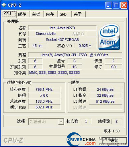 Intel Atom Z530(1600MHZ/512K L2/45nm/533MHZ) |