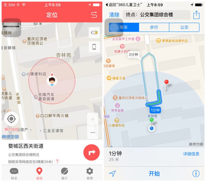 作为家长来说,我们需要知道的不仅仅是孩子目前的所在地,如果一时半会儿找不到孩子,我们可以用APP来进行导航,由于软件集成了知名的高德地图,所以它能帮助家长以最短的距离导航到孩子所在的地点,如果您的孩子不慎走丢,这就成了找孩子神器呢!!!!