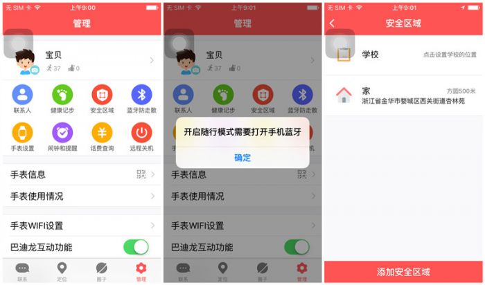 在软件设置方面也不乏亮点,比如我们可以通过设置安全区域/蓝牙防走散功能,在可控范围内时刻关注孩子的移动地点,如果超出设置范围,手机会立刻发出警报,如果您是一位对孩子关爱有加的家长,相信一定不会错过这个功能!