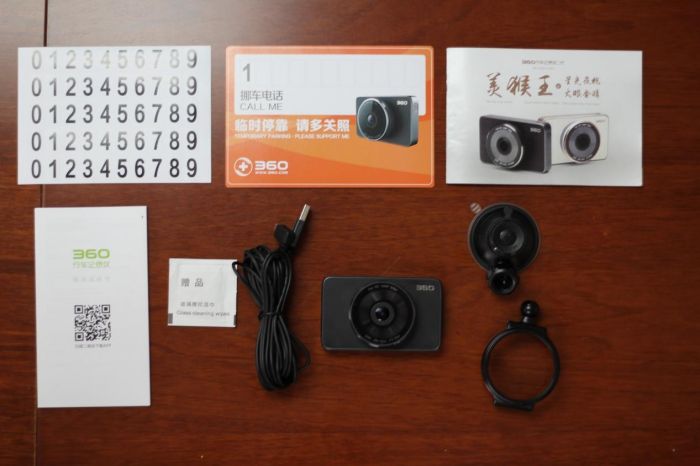 配件方面很合理,有电源线,吸盘支架,说明书以及挪车牌,配上了五套数字,方便使用。不仅如此,盒内还配送了一张酒精湿巾,可以在安装完成之后擦拭镜头,避免影响摄像效果。