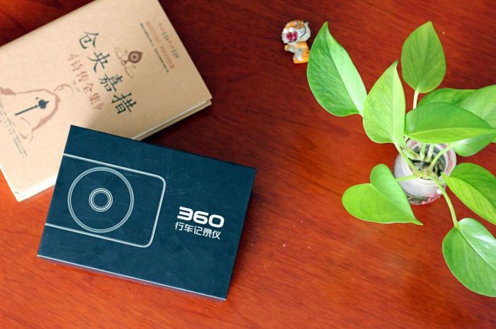 入手后,打开外包装袋。360行车记录仪的外盒采用的是简洁、时尚的设计理念。整体为黑色,上面印有白色的“360行车记录仪”和机身图案。