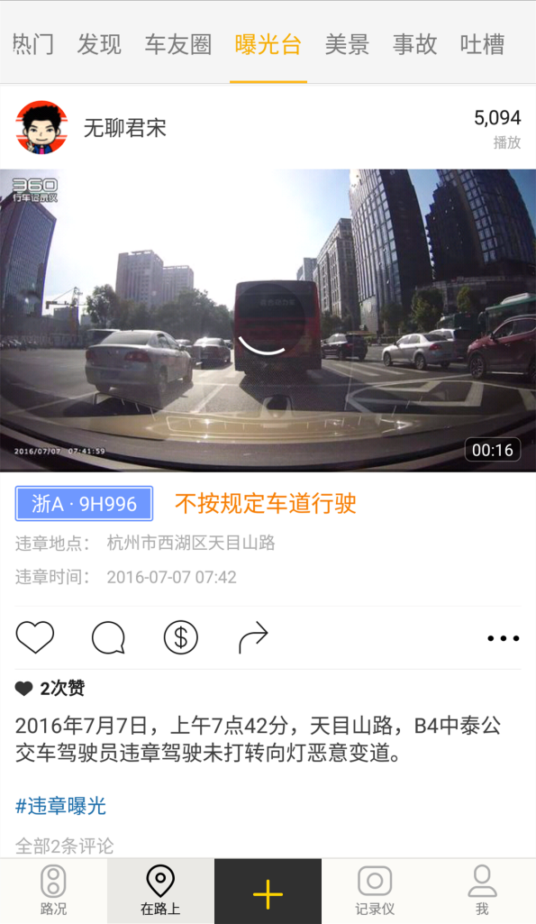 大家还可以将行车过程中遇到的不文明行车行为,上传到手机APP中的“曝光台”中。可以与全国各地的用户一起一起吐槽,也是让大家以后遇到类似情况多一份注意。