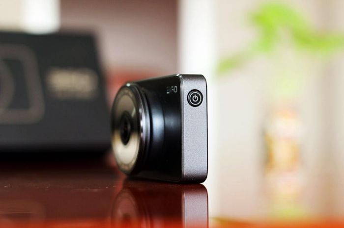 机体正面是个超大镜头,镜头上下边缘标有记录仪数据,像1080P画质和165度的超大广角都有标注。给人一种手握微单的感觉,单看外形就能俘获一批“看脸”的用户。