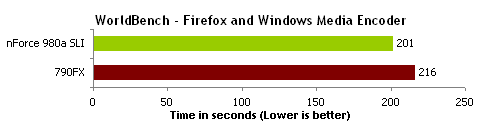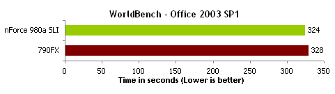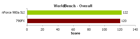 从WorldBench的综合得分看,nForce 980a SLI比790FX高2分