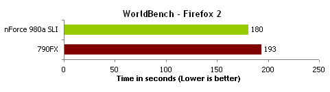 在这方面测试中,nForce 980a SLI的速度要略快一些,包括Firefox测试。