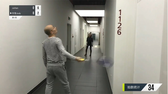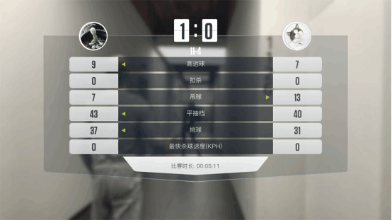 比赛过程中,比分也会对应显示在左上角。一些精彩的回合,例如最长多拍,会有一个拍数统计的效果在右下角,随着场上队员挥拍,数字不断增加。