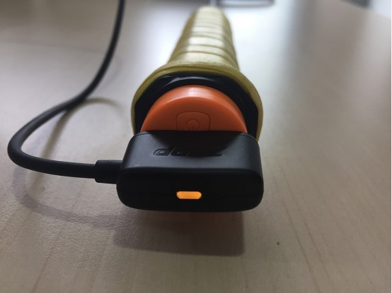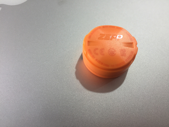 拆开包装盒,一眼就能看到荧光橙色的传感器,浑圆的造型和ZEPP2代传感器产品一样,不过颜色由荧光绿变成了荧光橙。