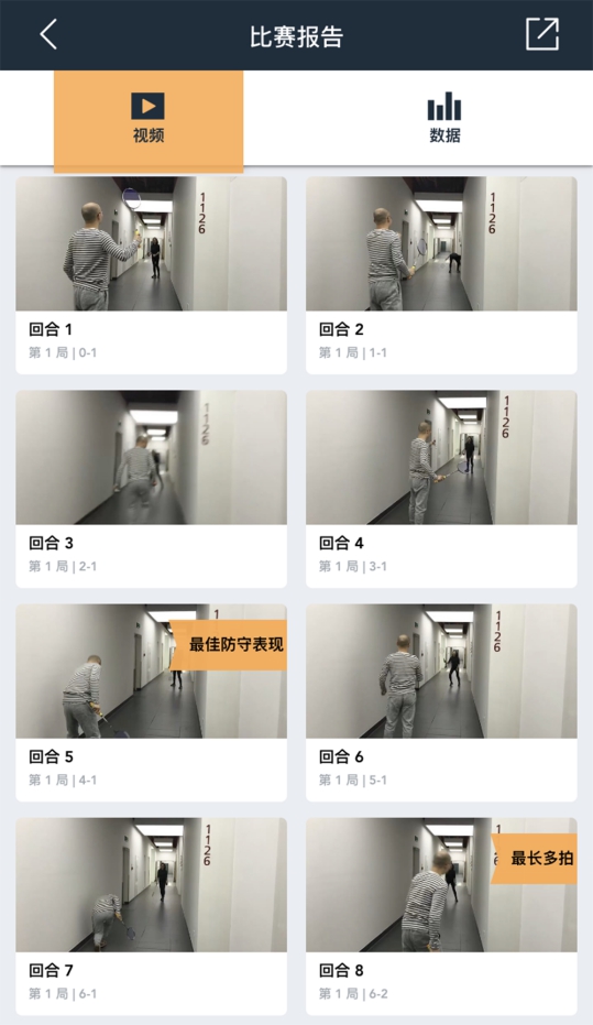 所有的回合短视频中,与ZEPP的介绍一致,“最佳防守”和“最长多拍”的回合被标记了出来,但由于本局比赛没有杀球,所以并没有“最强扣杀”和“最佳进攻”回合。
