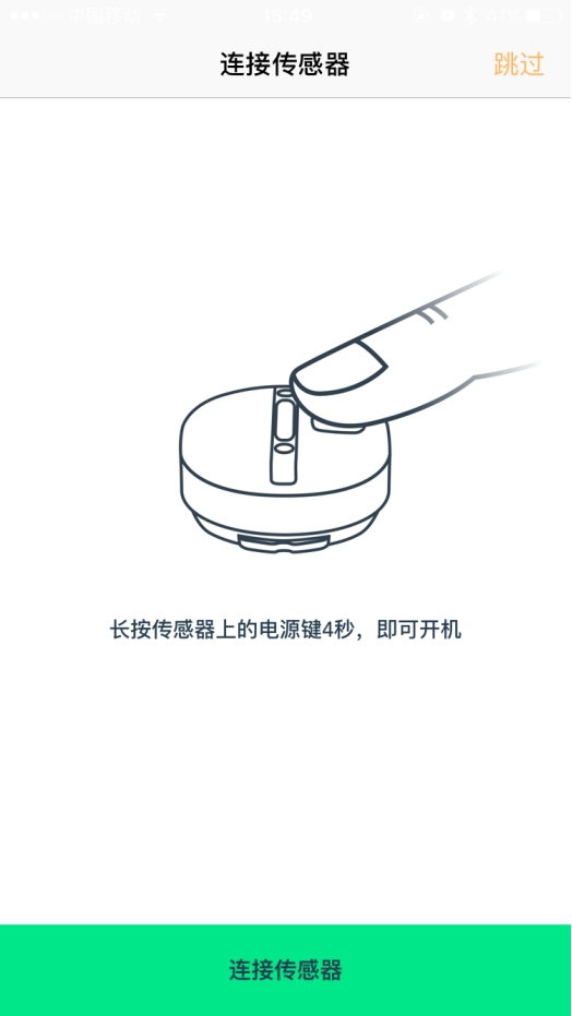 下载完成以后,注册,登陆,就可以了。一进入APP,就会弹窗提示连接传感器: